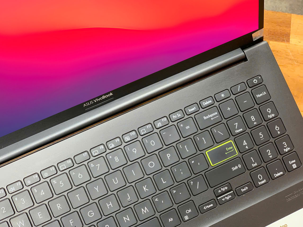Đi cùng bàn phím full size với nút Enter được làm tông màu vàng làm điểm nhấn và cảm biến vân tay 1 chạm giúp mở khóa nhanh chóng, hiện đại